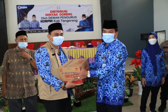 Tangerang – Ketua Dewan Korps Pegawai Republik Indonesia (Korpri) Kabupaten Tangerang Moch Maesyal Rasyid mendistribusikan 22.620 liter minyak goreng bersubsidi kepada masyarakat di Kabupaten Tangerang. Acara tersebut secara perdana dan simbolis digelar di Kecamatan Tigaraksa.