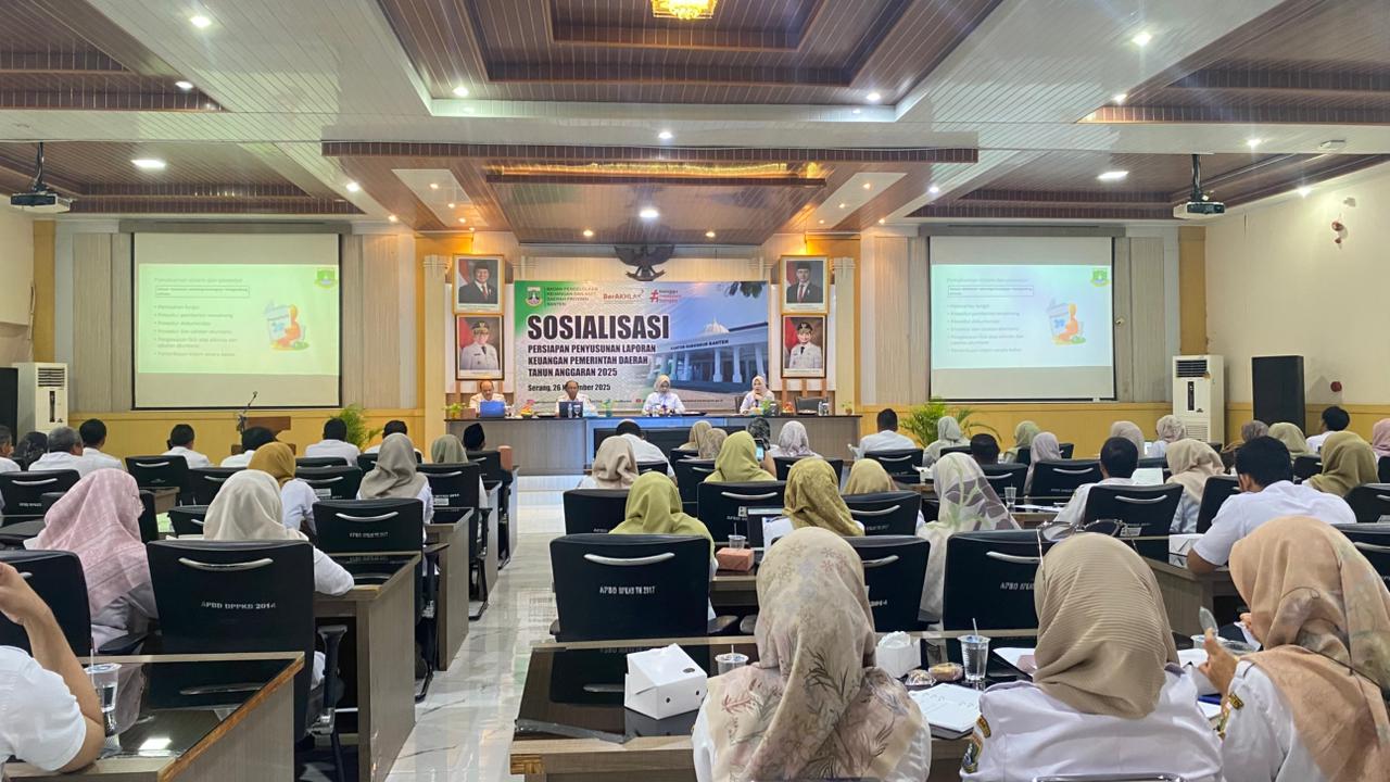 Banten – Badan Pengelolaan Keuangan dan Aset Daerah (BPKAD) Provinsi Banten menggelar Sosialisasi Persiapan Penyusunan Laporan Keuangan Pemerintah Daerah (LKPD) Tahun Anggaran 2025, bertempat di Aula Lantai III BPKAD, Selasa (26/11/2025).