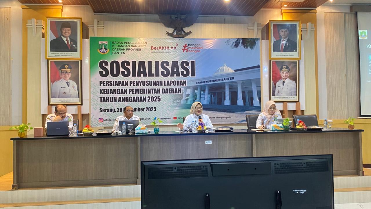 Banten – Badan Pengelolaan Keuangan dan Aset Daerah (BPKAD) Provinsi Banten menggelar Sosialisasi Persiapan Penyusunan Laporan Keuangan Pemerintah Daerah (LKPD) Tahun Anggaran 2025, bertempat di Aula Lantai III BPKAD, Selasa (26/11/2025).